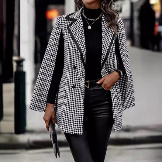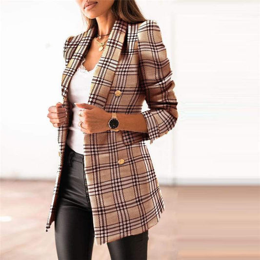 Veste blazer motif plaid manches longues