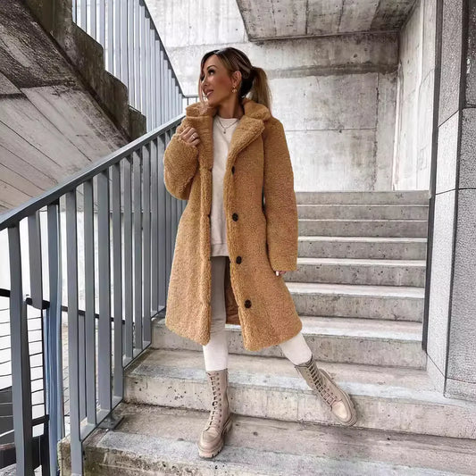 Veste mi-longue en peluche fermeture bouton