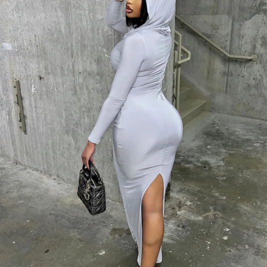 Robe Longue Fendue Manches Longues Épaule Oblique