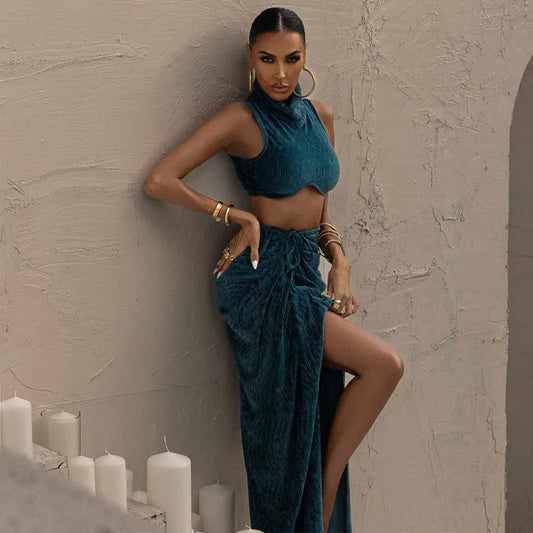 Ensemble Haut Court Sans Manches Et Sa Jupe Fendue