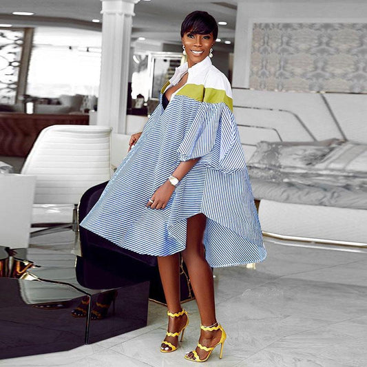 Robe Col V Sans Manches À Rayures Et À Lacets