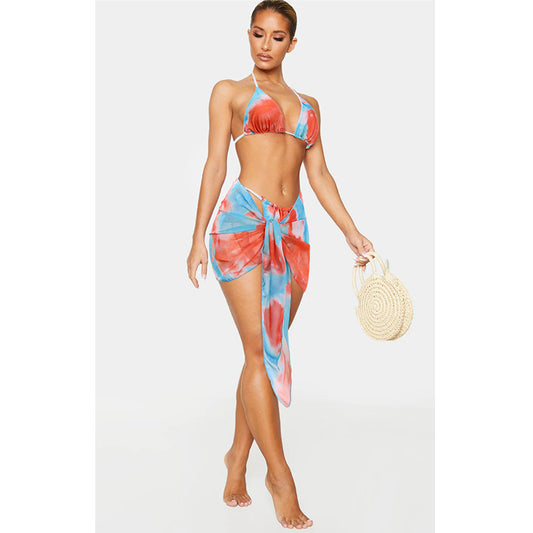 Dreiteiliger Bikini-Badeanzug mit Batikmuster