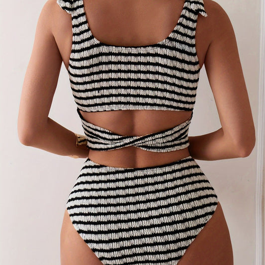 Zweiteiliger, gestreifter Schlauchbadeanzug