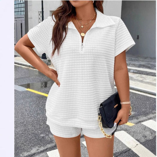 Ensemble haut et short jacquard décontracté