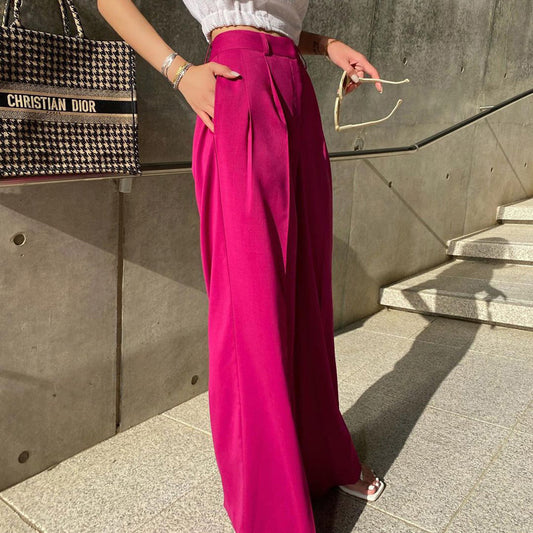 Pantalones elegantes de cintura alta con cinturón