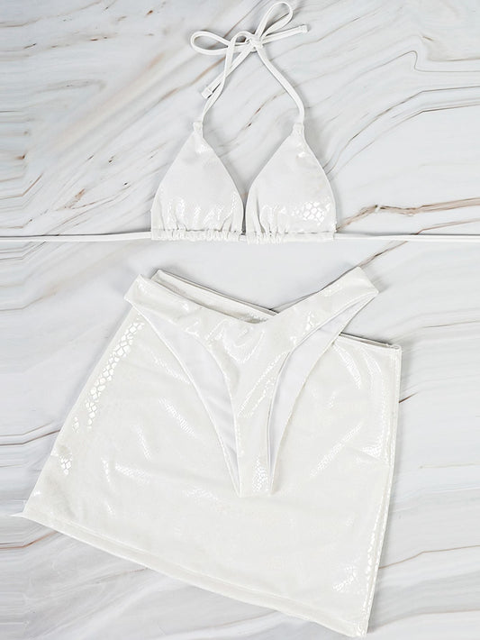 Traje de baño bikini de 3 piezas con estampado de serpiente