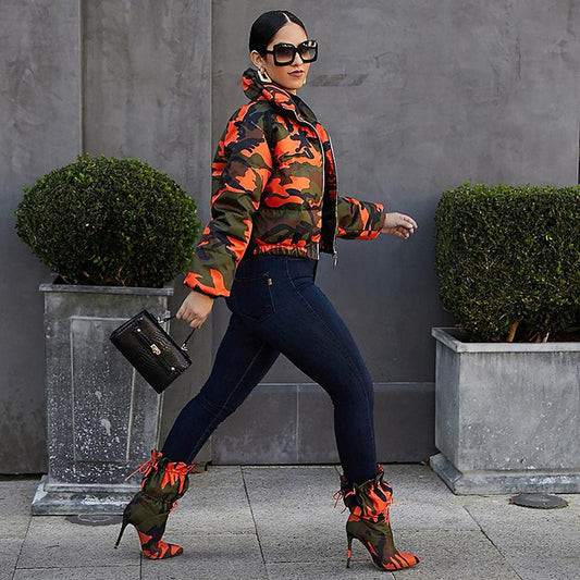 Chaqueta acolchada de cuello alto con estampado de camuflaje