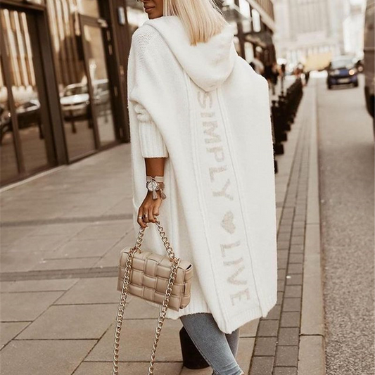 Abrigo tipo cárdigan de punto con capucha y manga larga