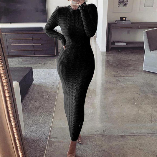 Vestido maxi ajustado de punto con cuello redondo y manga larga