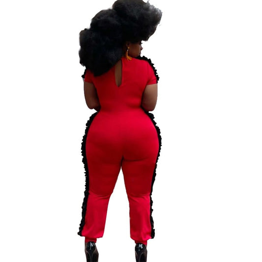 Traje de baño de una pieza con cuello en V y volantes