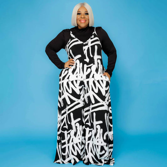Monos de pierna ancha sin espalda y con estampado de grafiti