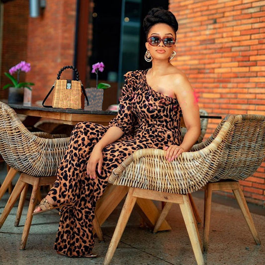 Mono de manga corta abullonada con un solo hombro y estampado de leopardo