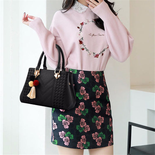 Bolso de mano de gran capacidad con estampado de letras y patchwork de lona