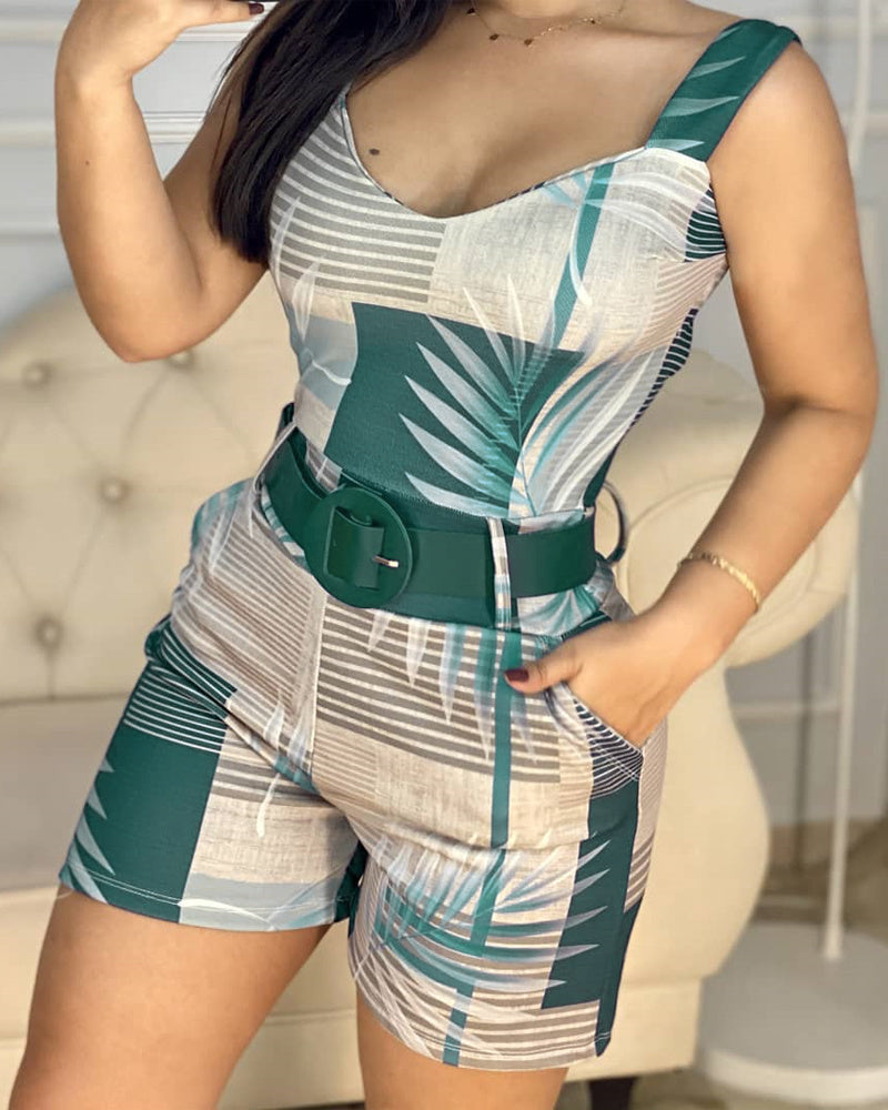 Combinaison short à bretelles imprimé